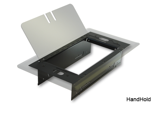 The HandHold basket is an alternative to the standard FMCA series basket and can be configured for applications that would normally require field modification or a custom-fabricated box.The open bottom allows cables to pass through, and the ModuLine Insert Panel Bracket Kit (MPIB) gives you the ability to mount connectors in the ends of the basket.The Expander Panel options allow for further customization to allow for mounting of active devices in the bottom of FMCA2000 and FMCA3000 series floor boxesThe HandHold Basket is ideal for computer floor installations, can accomodate duplex power, and is available for the FMCA2000 (1ea) and FMCA3000 (up to 2ea) series floor box assemblies.